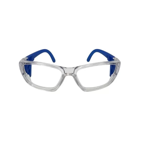 Óculos de segurança constituídos de armação e apoio nasal confeccionada em uma única peça de náilon com proteção lateral estendida e haste tipo espátula confeccionada no mesmo material da armação fixa através de pinos plásticos disponível nas combinações, com, respectivamente, armação e hastes nas cores incolor com incolor, incolor com rosa transparente, incolor com azul escuro, incolor com preto, incolor com vermelho, preto com preto e cinza transparente com cinza transparente, além da opção de semi-hastes com elástico de poliéster com armação e semi-hastes disponíveis nas cores incolor, preto e cinza transparente, com lentes confeccionadas em policarbonato incolor e CR-39 incolor presas na armação através de encaixe.